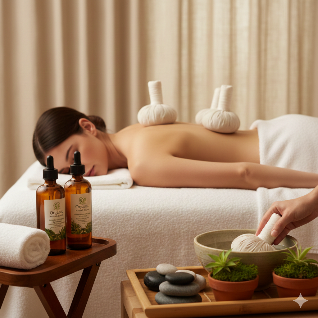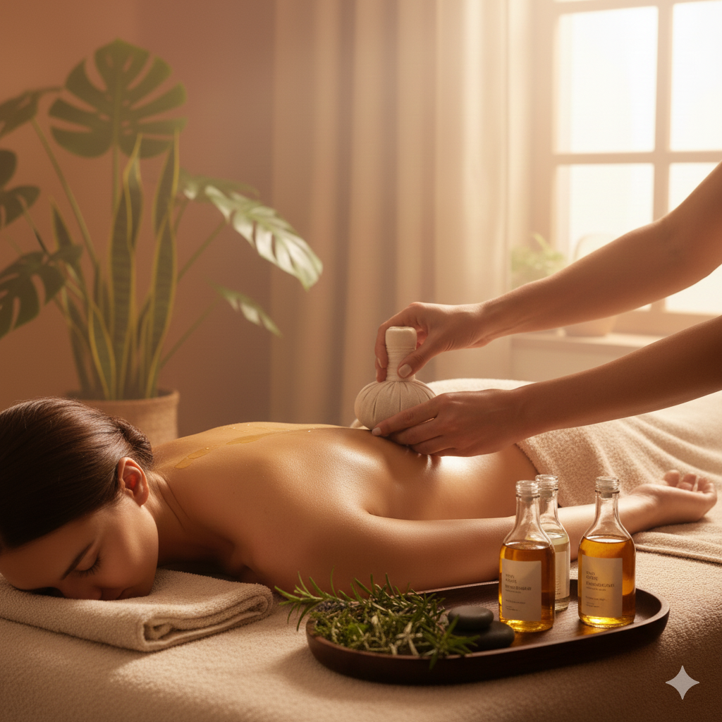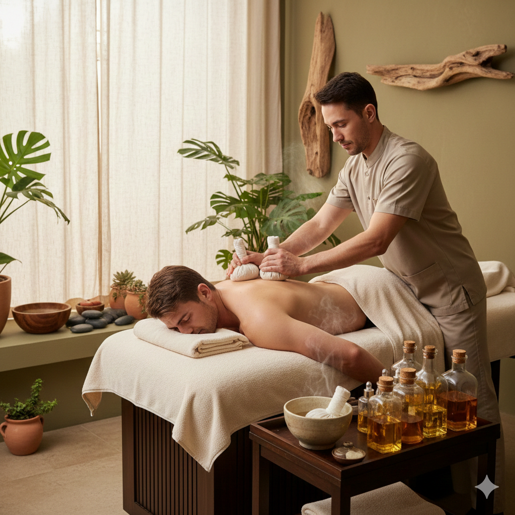 Ontdek een unieke wellnesservaring waarbij eeuwenoude massagetechnieken worden gecombineerd met warme kruidenstempels en pure biologische oliën. Deze bijzondere behandeling stimuleert diepe ontspanning, voedt de huid en brengt lichaam en geest opnieuw in balans.